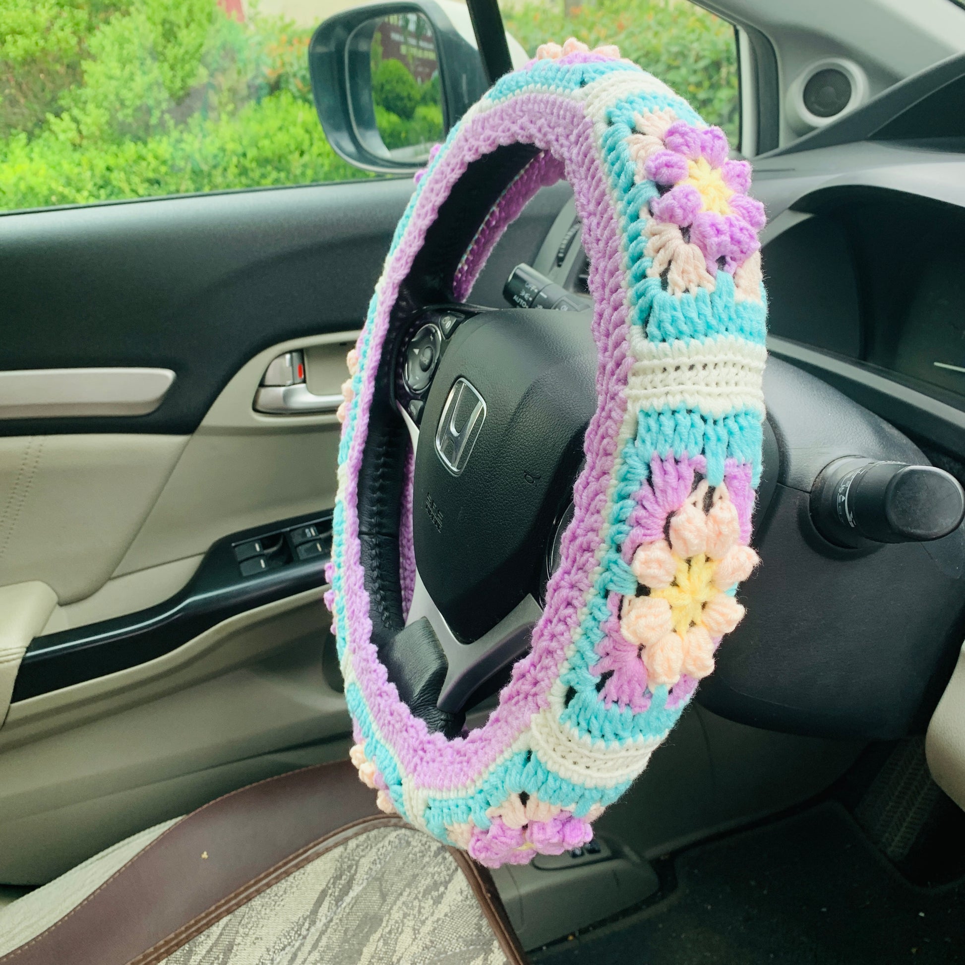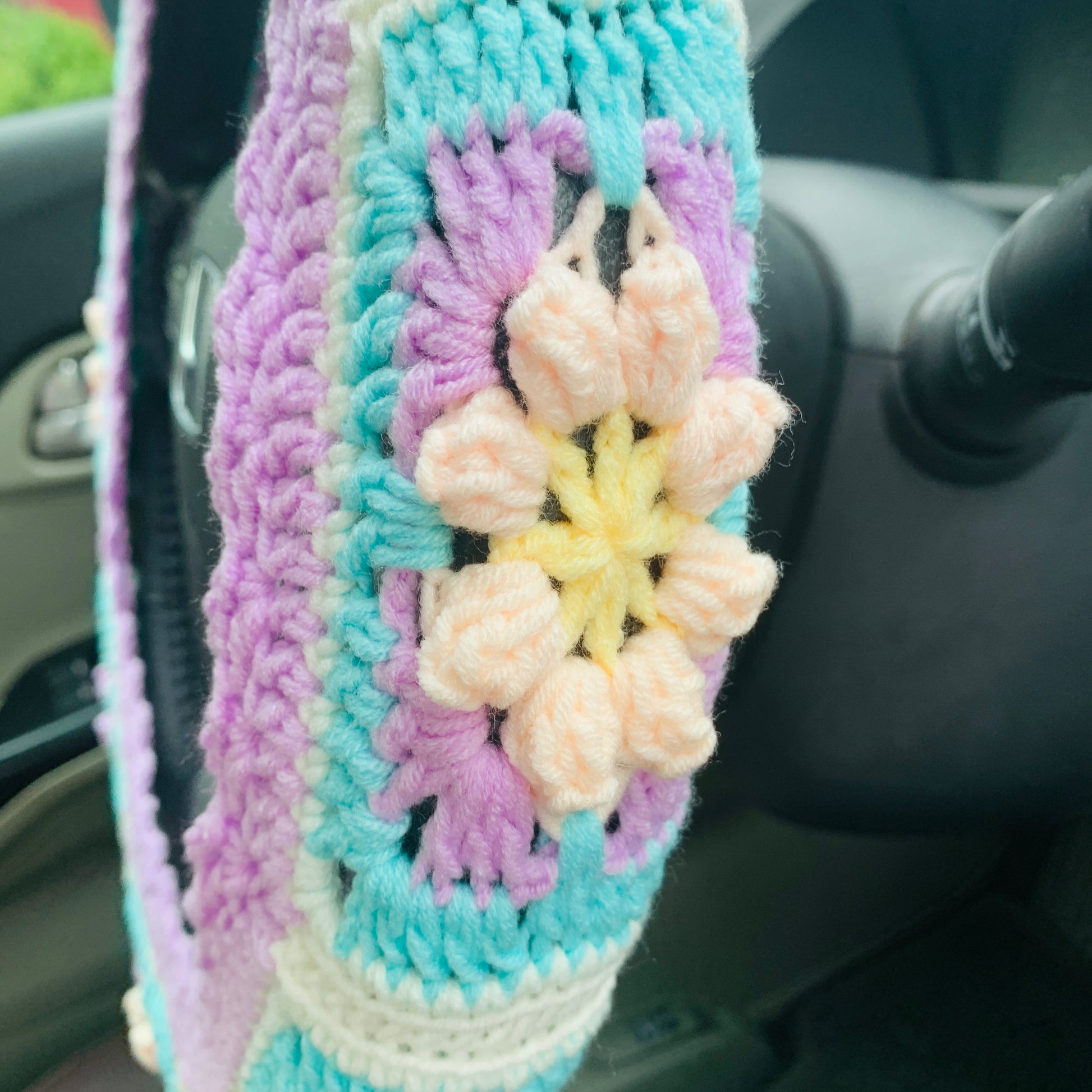 *Handmade Crochet flower steering wheel cover soft, cozy and at the same time durable and practical.