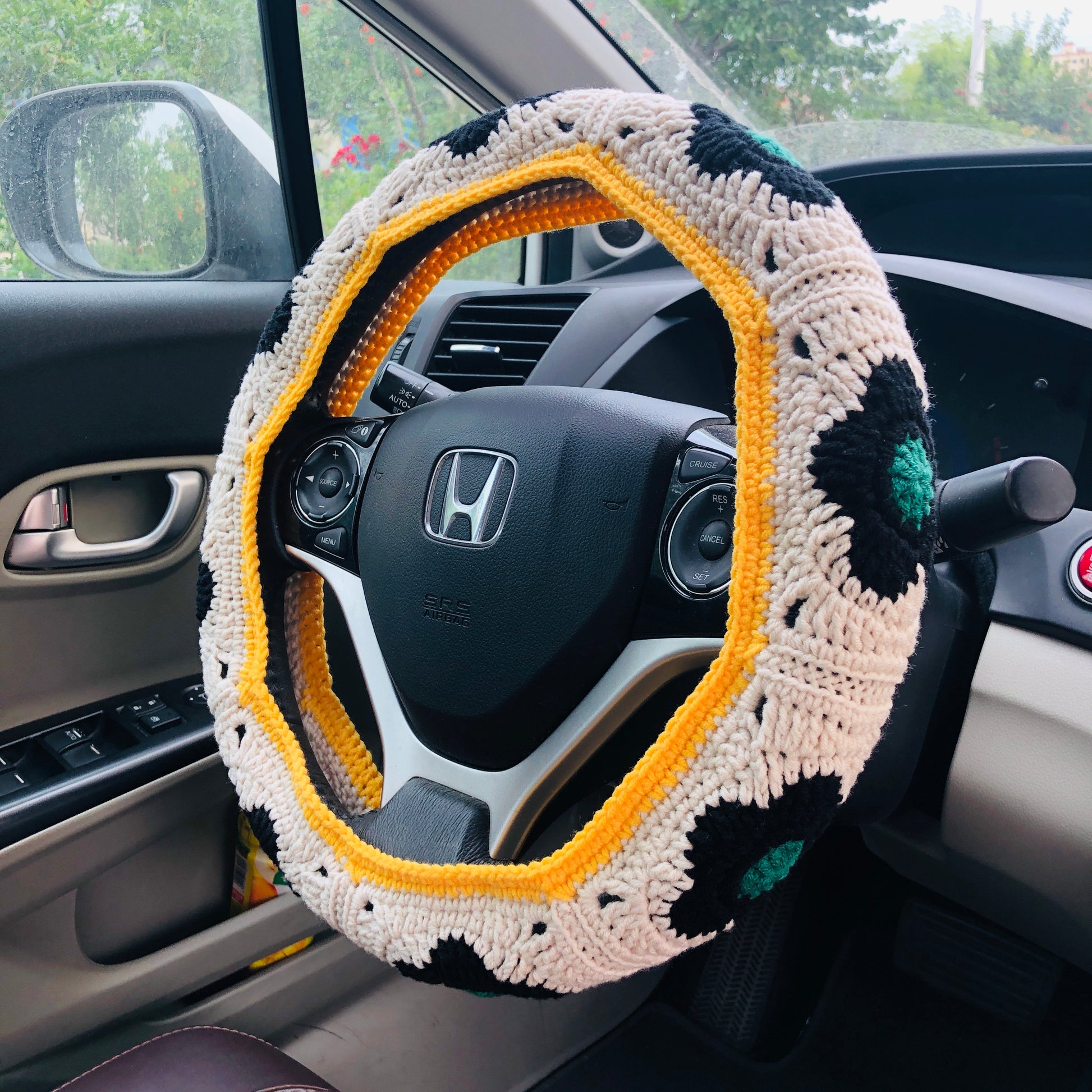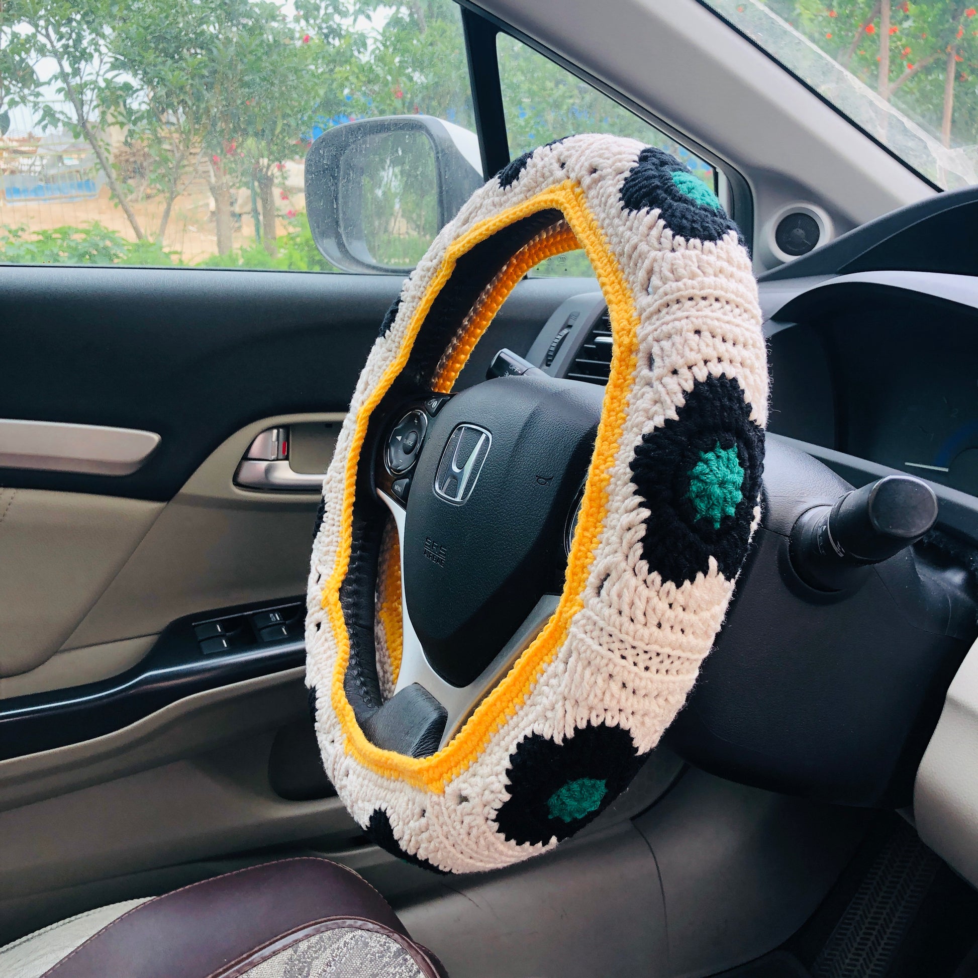 *Handmade Crochet flower steering wheel cover soft, cozy and at the same time durable and practical.