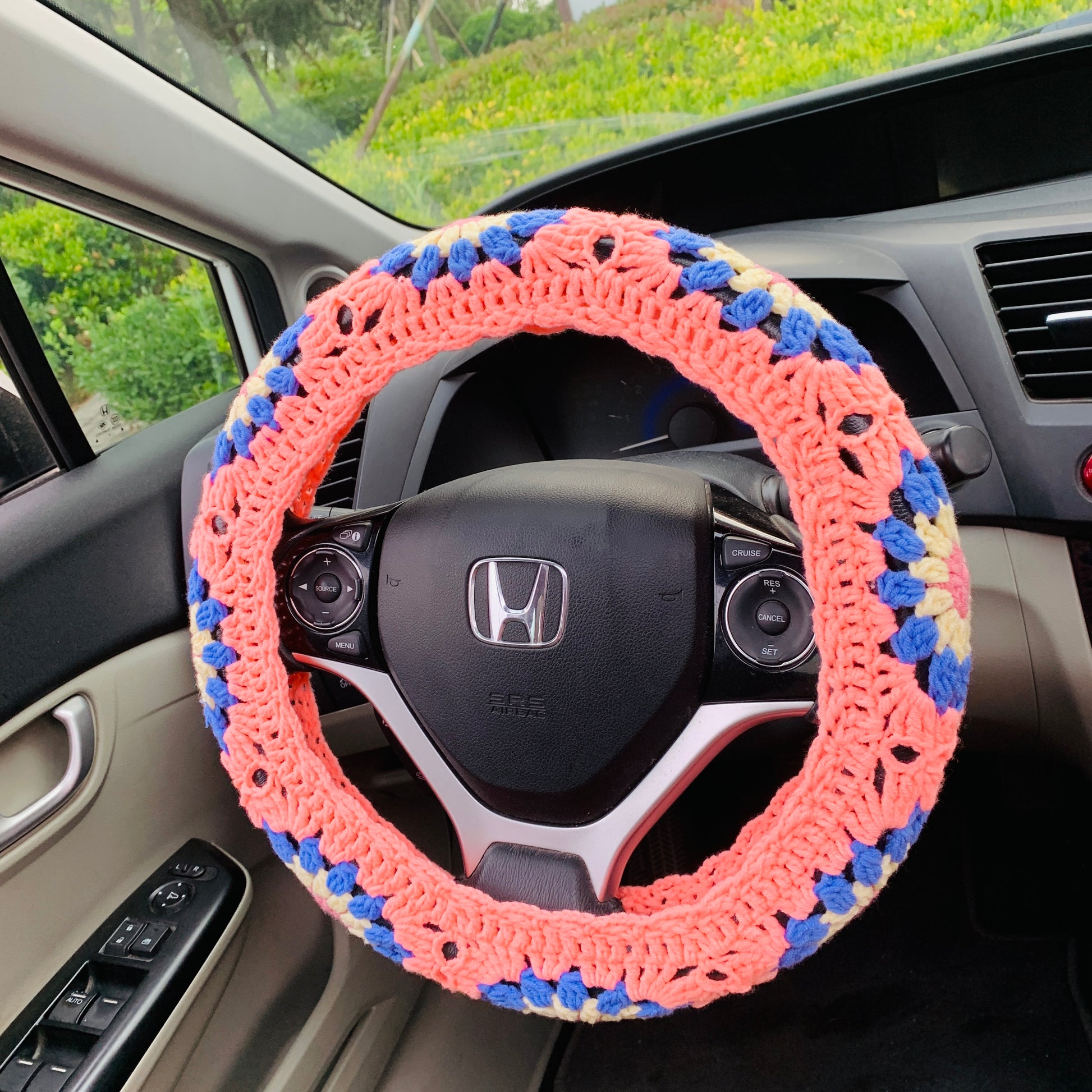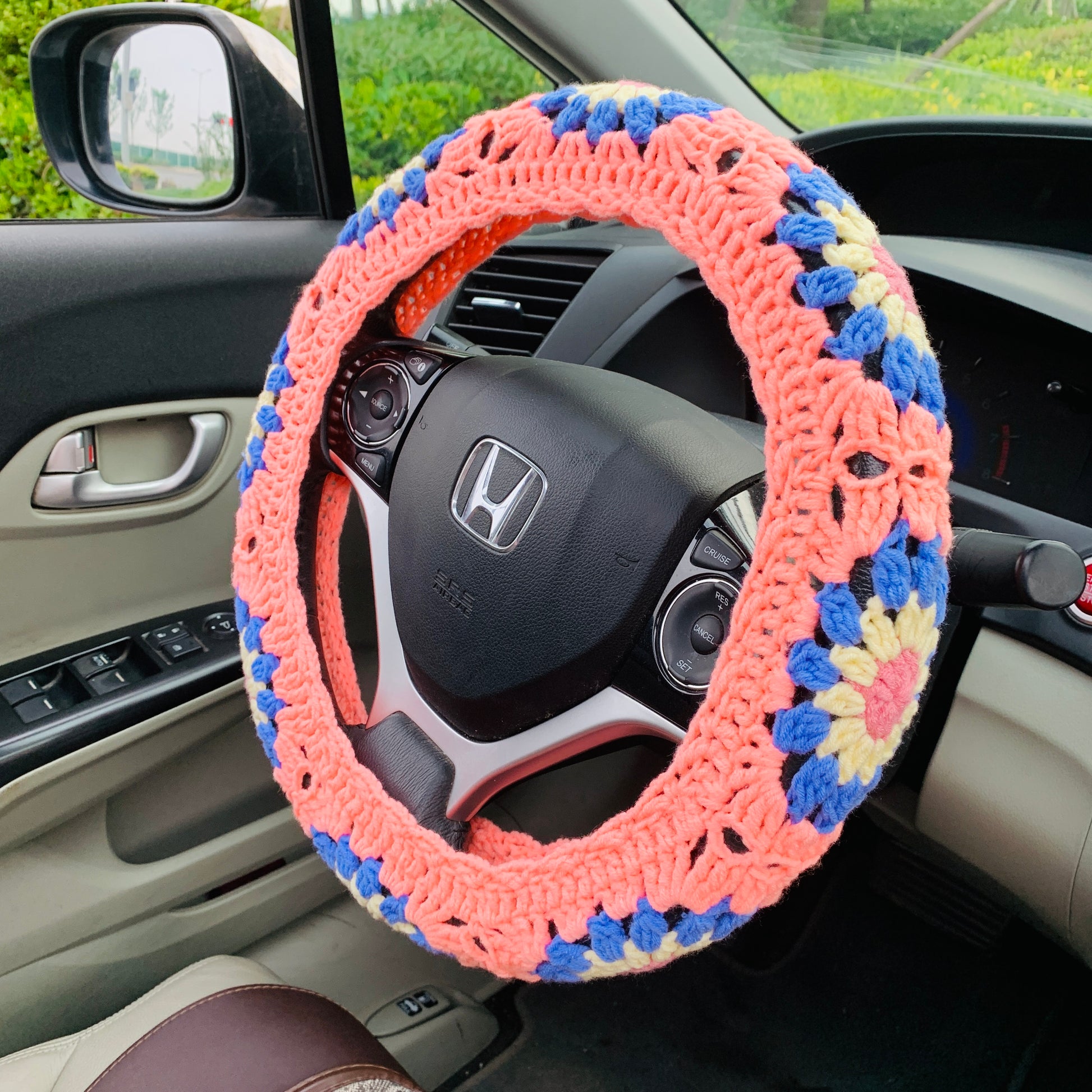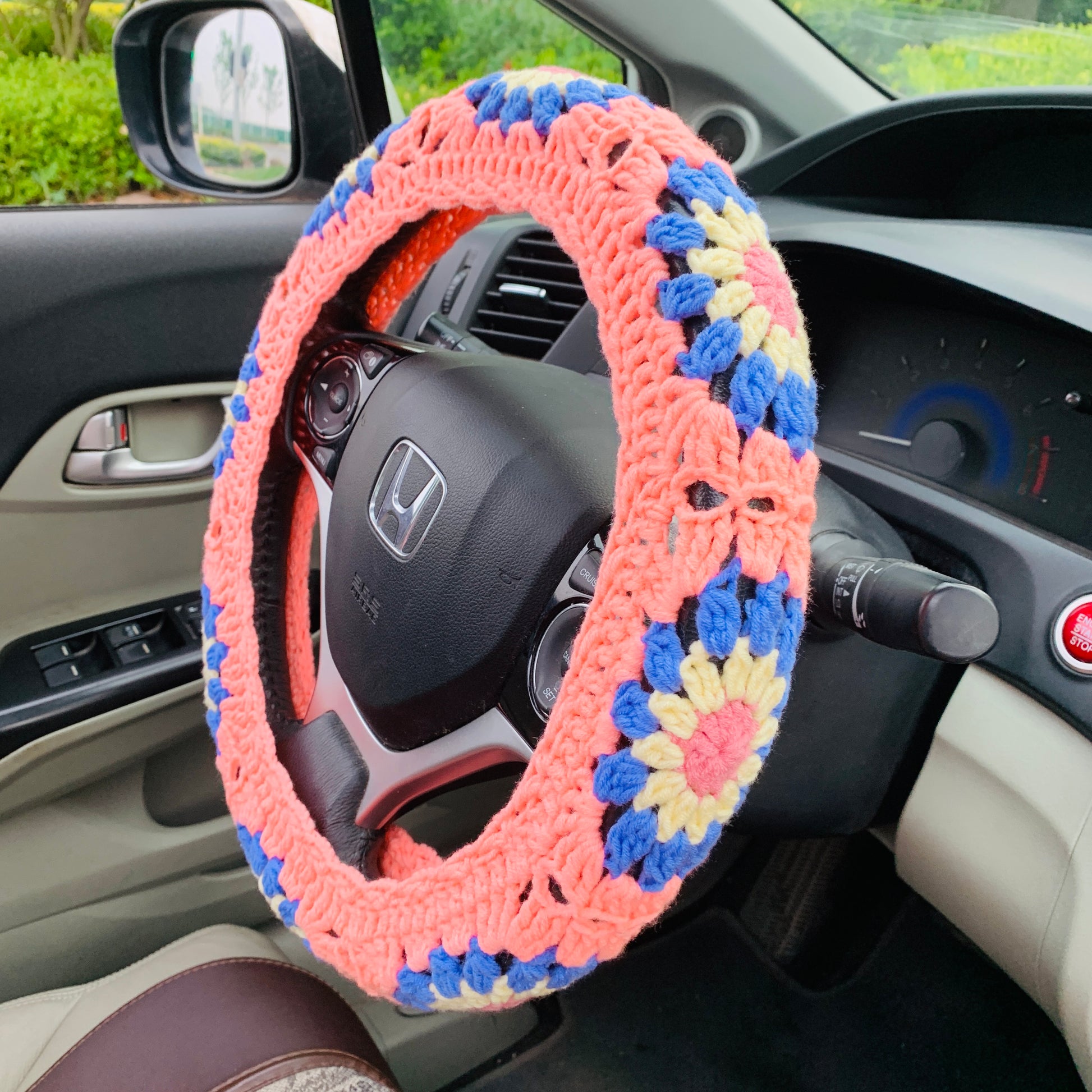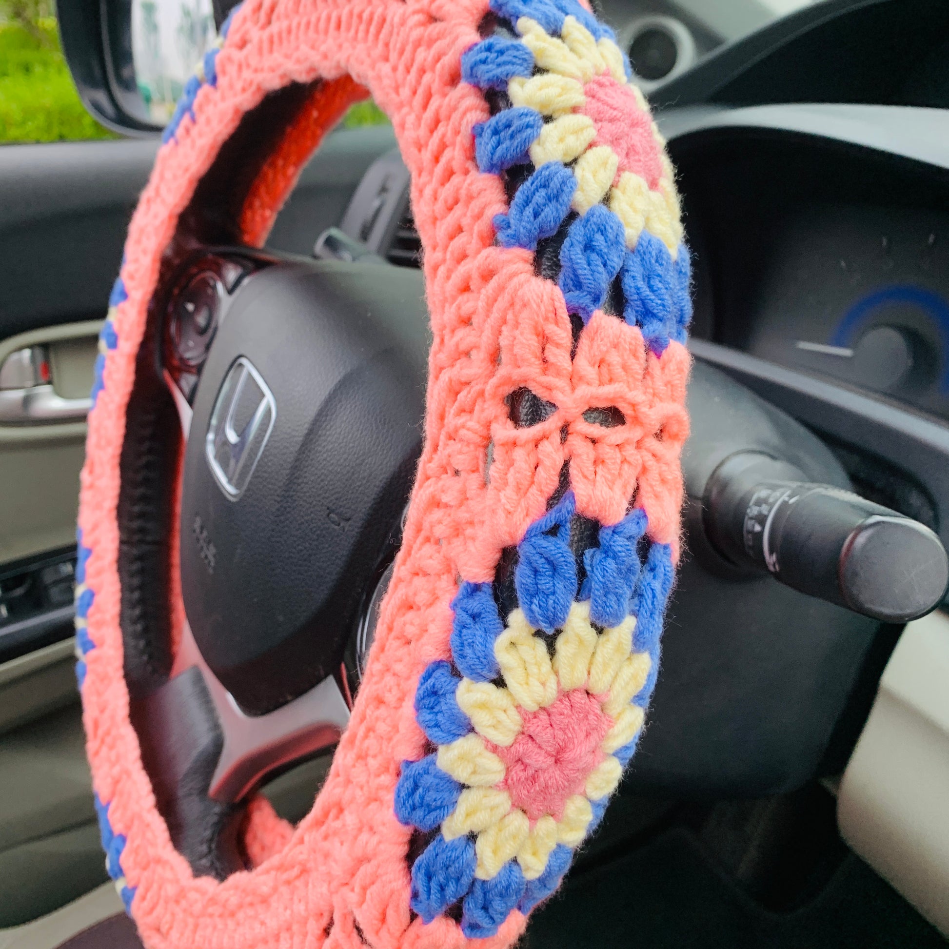 *Handmade Crochet flower steering wheel cover soft, cozy and at the same time durable and practical.