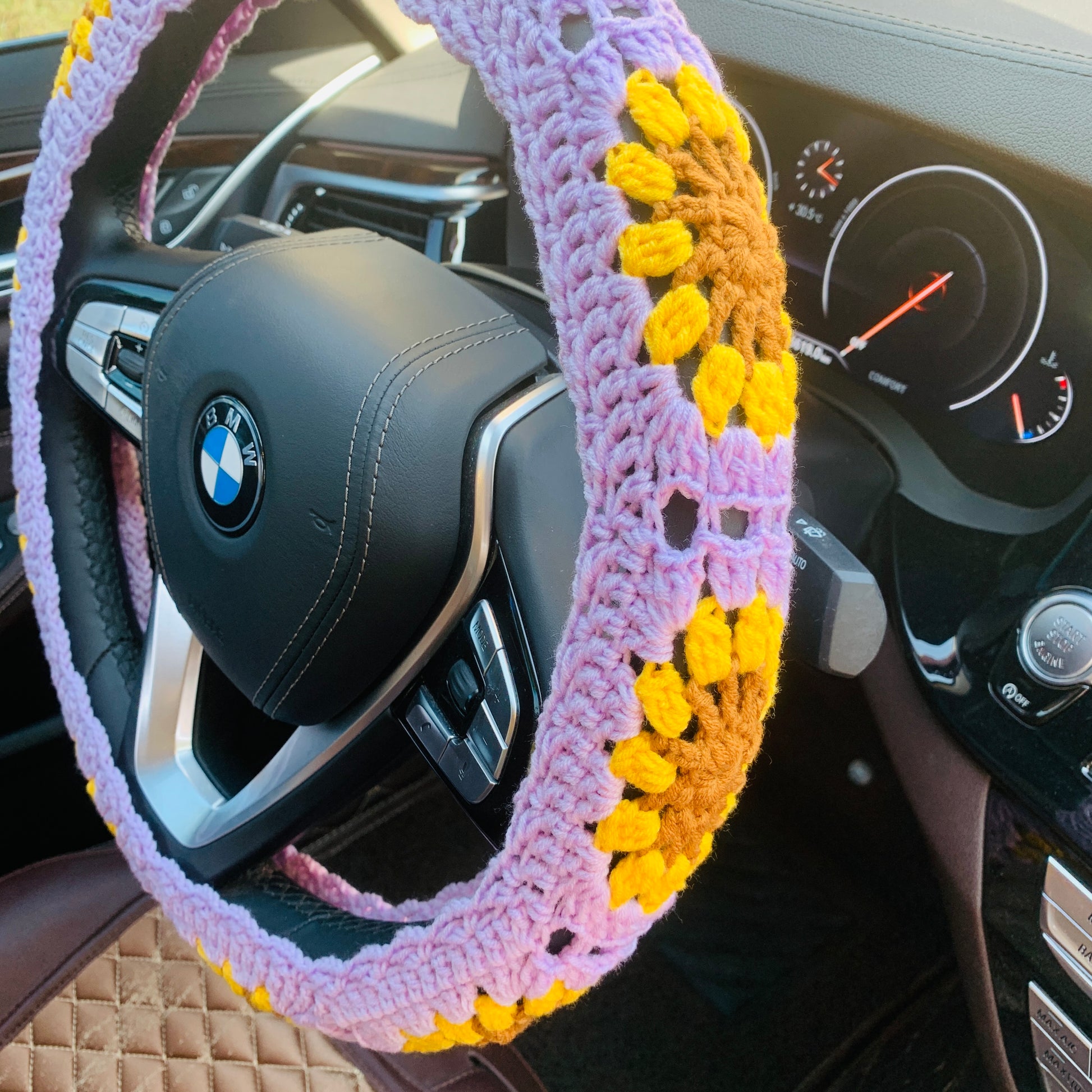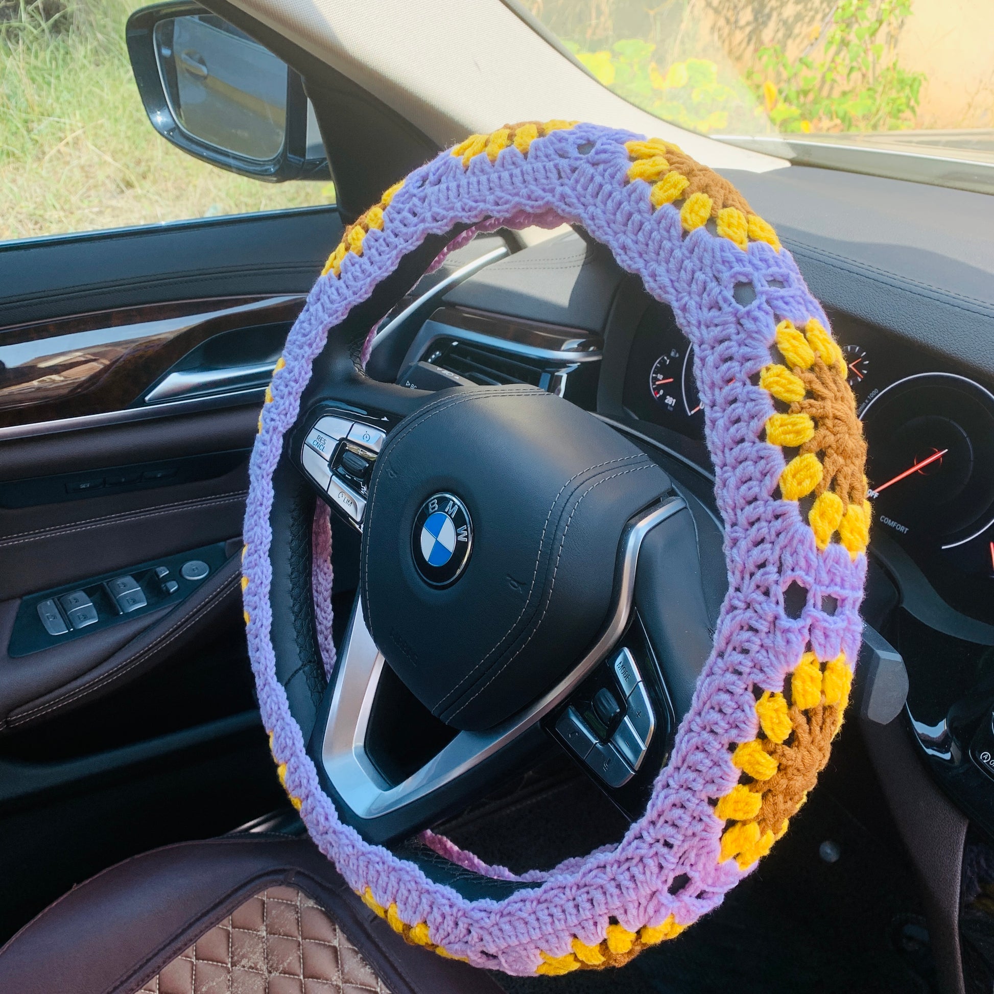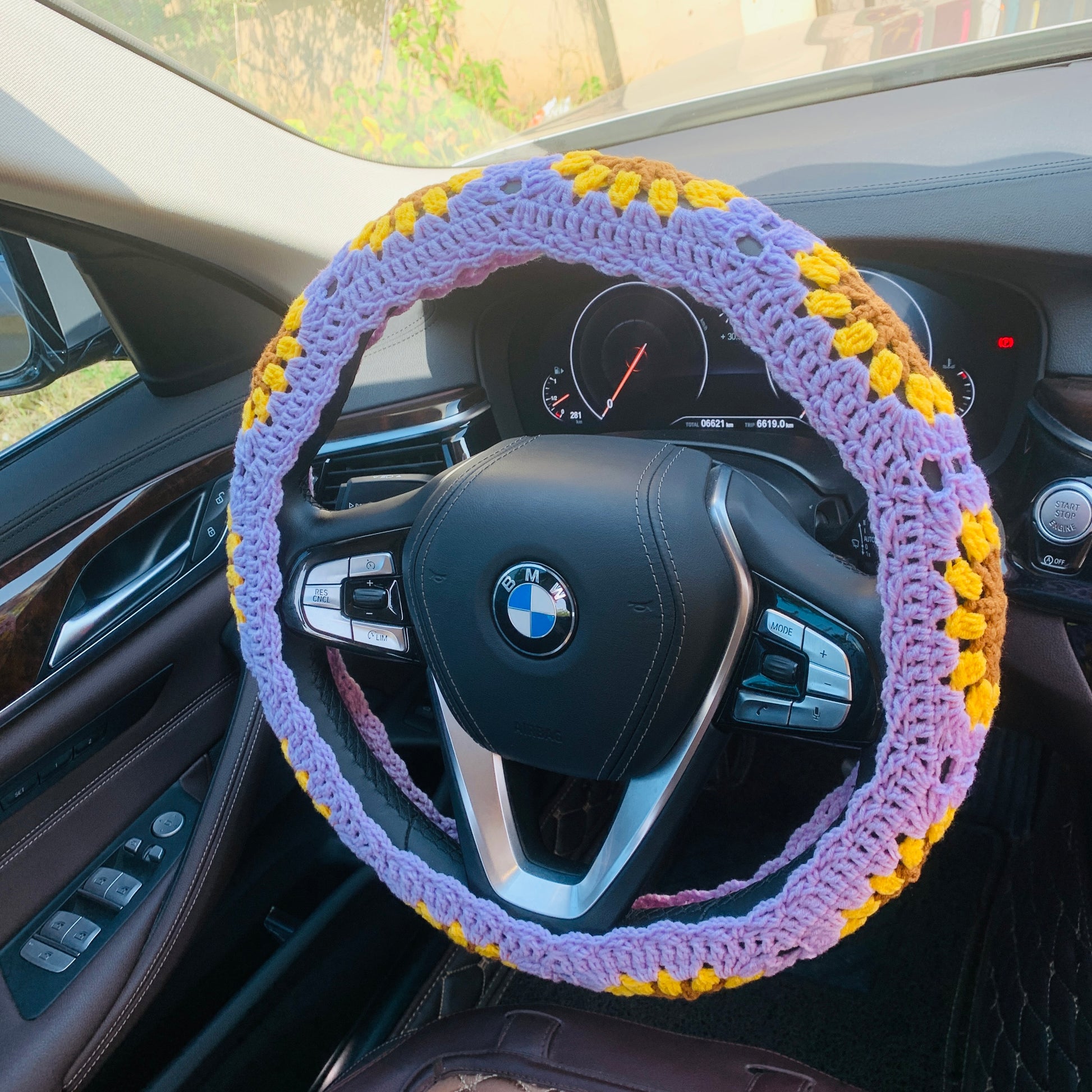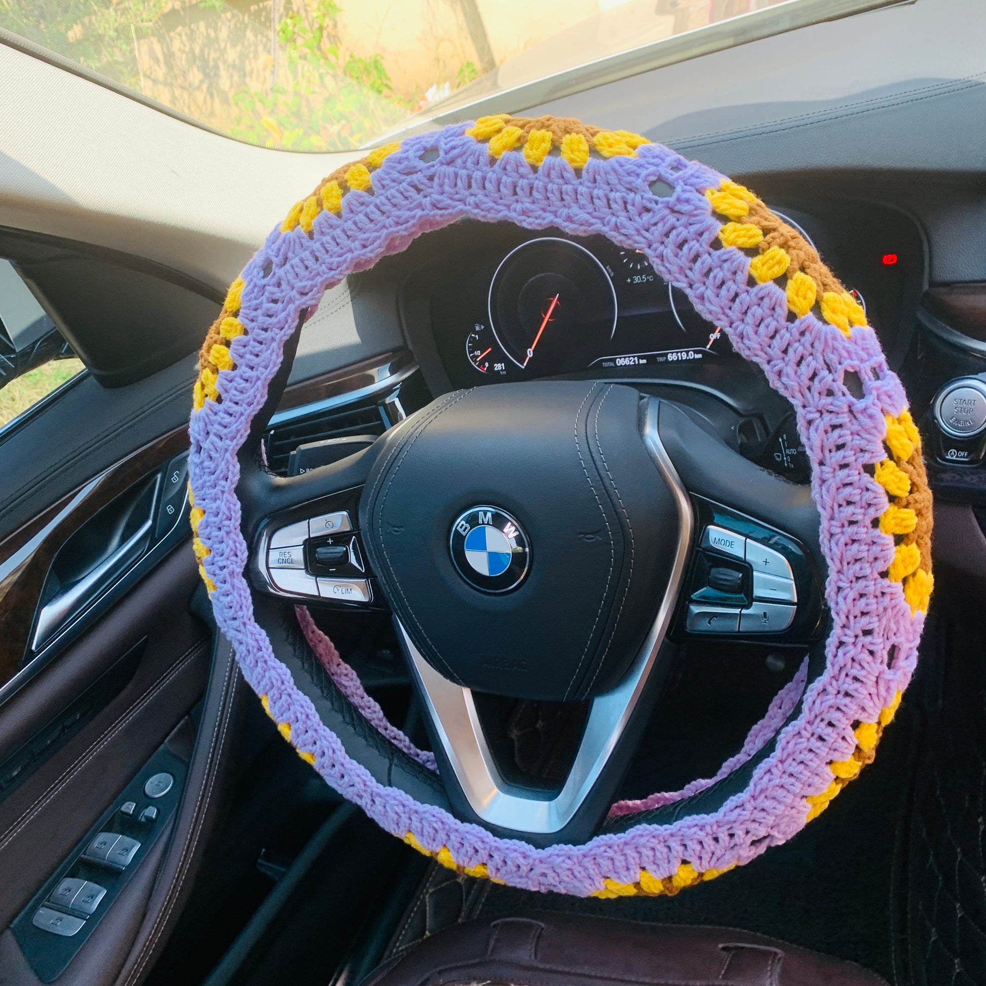 *Handmade Crochet flower steering wheel cover soft, cozy and at the same time durable and practical.