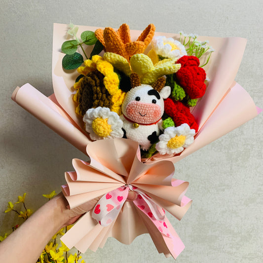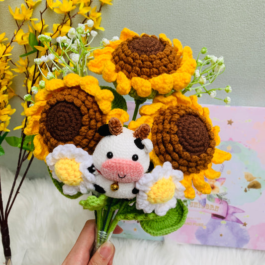 Crochet flowers, sunflower cow ornaments, cute A bunch of flower Anniversary bouquet Gift for her flower ornaments