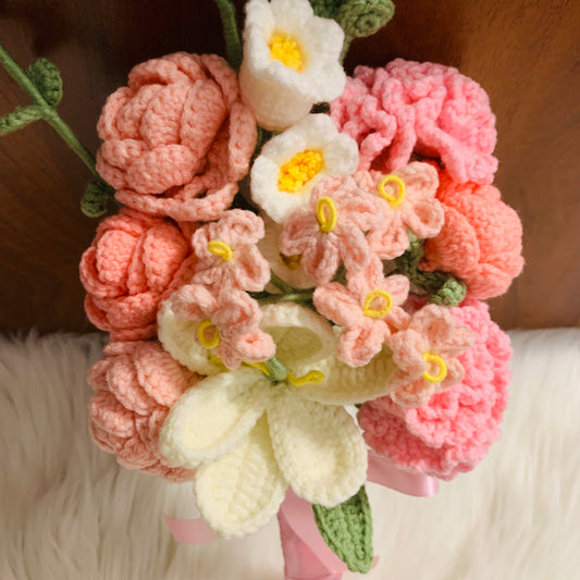 Crochet flowers tulip flower rose forget me not cute wedding Gift, Bridesmaid Gifts A bunch of flower Anniversary bouquet Gift for her