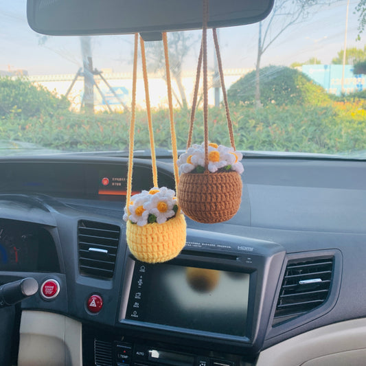 Cute Mini flower basket Car Mirror Hanging Interior Rear View Mirror Flower Car Accessories Crochet car gift