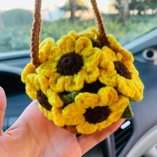 Crochet Cute sunflower basket kawaii Car Mirror Hanging Charm Fruit Decor Teens Interior Rear View Mirror car Accessories for Women