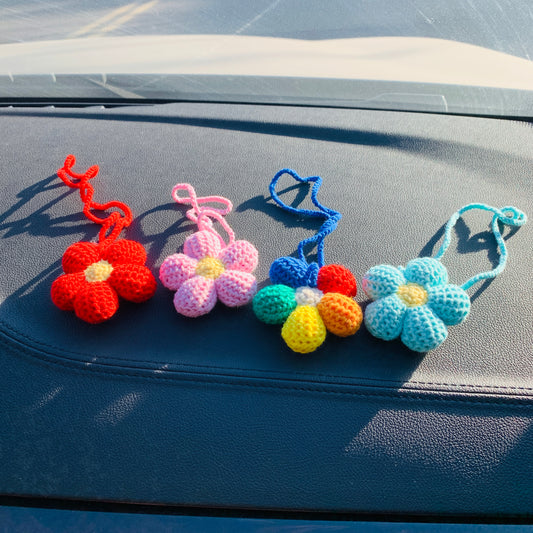 Cute daisy Car Mirror Hanging Interior Rear View Mirror Flower Car Accessories Crochet gift for car handmade gift
