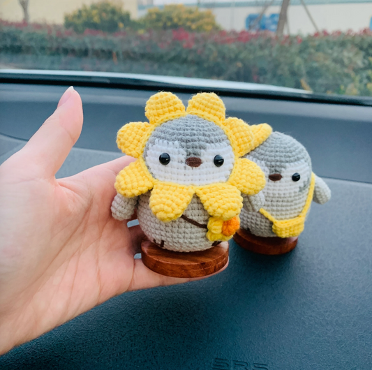 Handmade crochet Cute Penguin Car Accessories, sunflower car Dashboard Decor for women